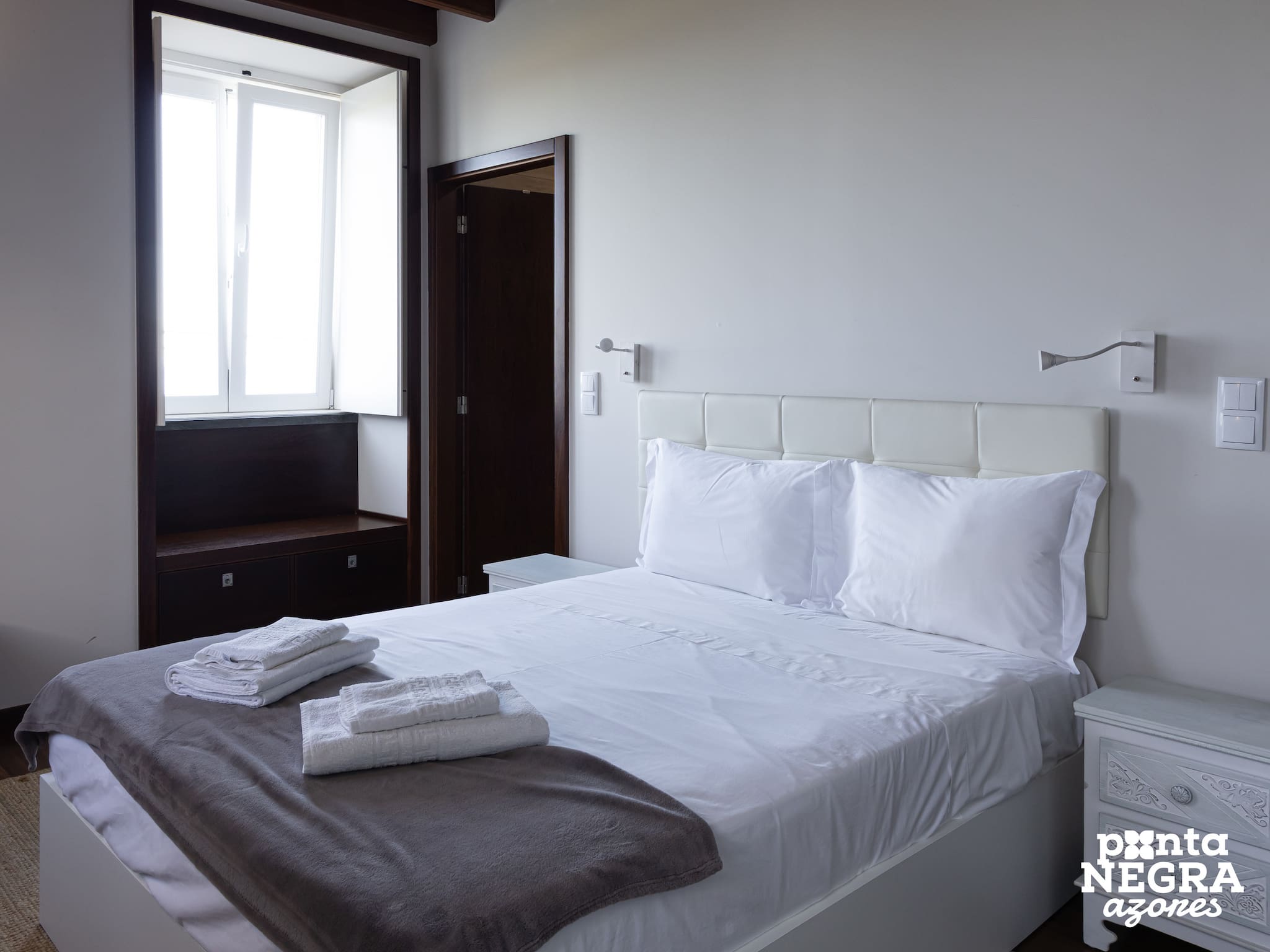 A moradia é composta por dois quartos, um com cama de casal e outro com duas camas de solteiro, ambos com casa de banho privativa, garantindo total conforto e privacidade aos hóspedes. Dispõe ainda de uma casa de banho social adicional, prática para o dia-a-dia.