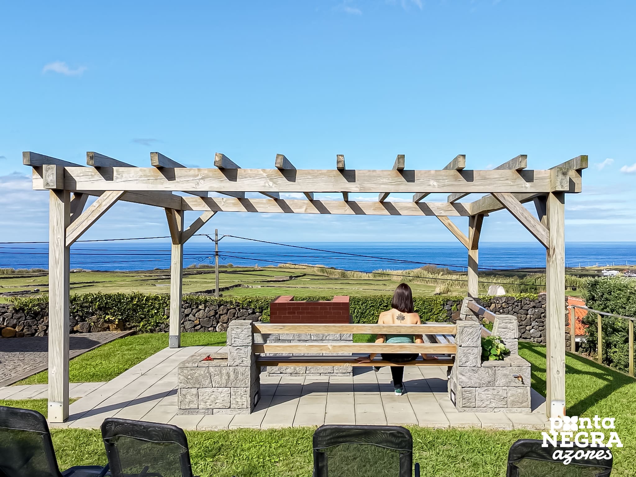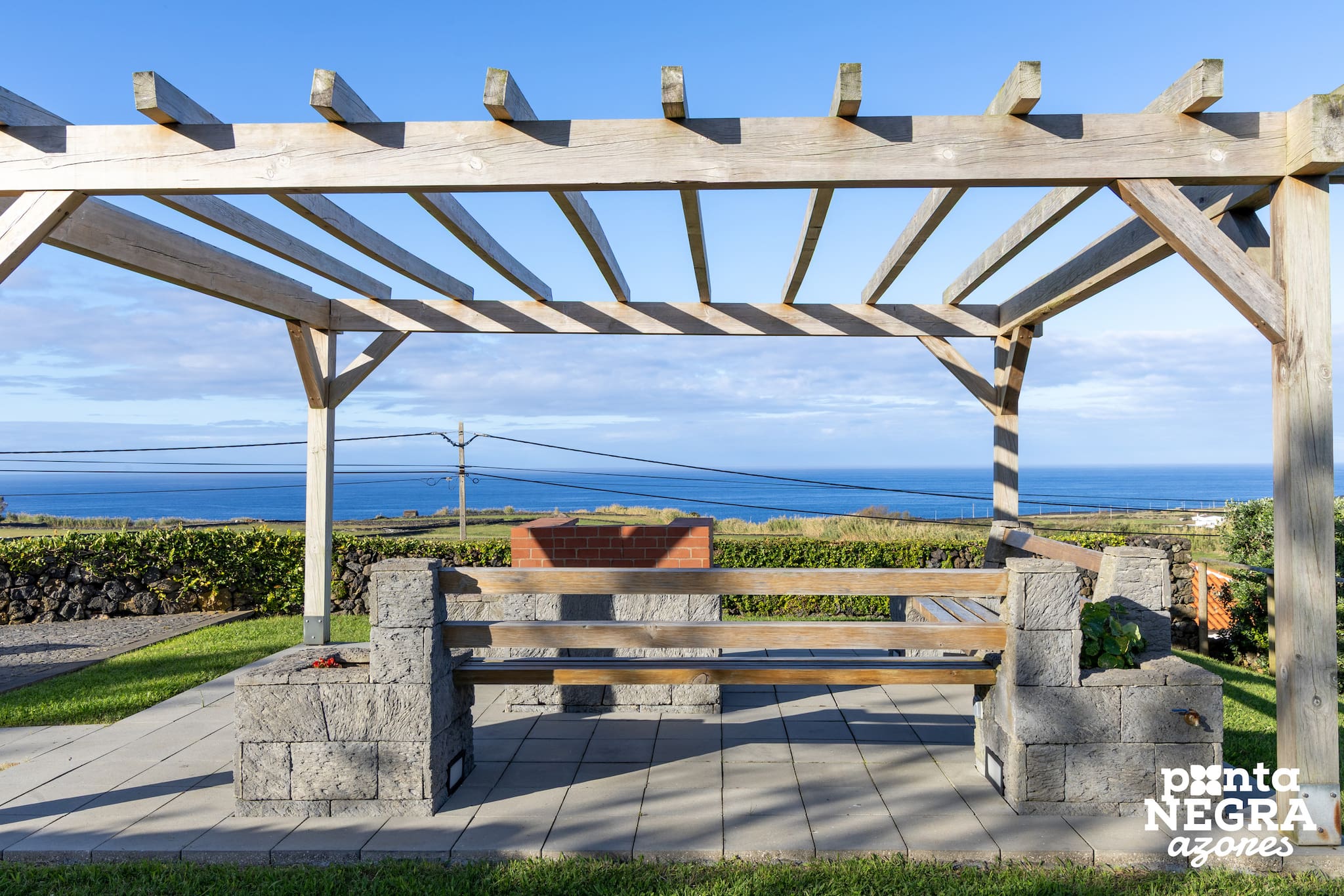 No exterior, os hóspedes podem desfrutar de um agradável espaço ao ar livre, equipado com mobiliário exterior confortável e comodidades para churrasco. A partir deste espaço é possível apreciar vistas abertas para a zona da Caldeira das Lajes, o aeroporto e o mar, tornando os momentos ao final do dia ainda mais especiais.