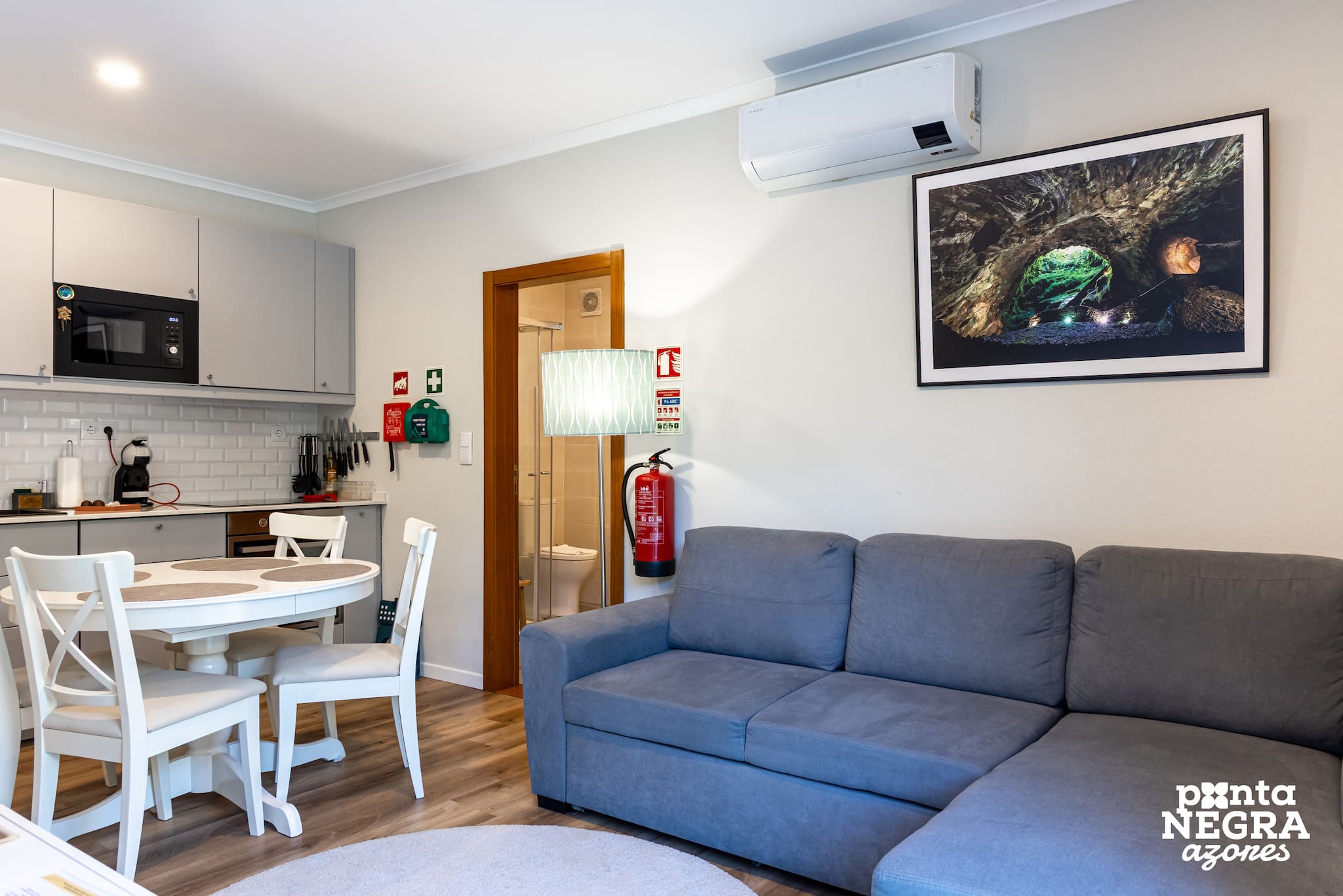 A Quinta de São José – Estúdio é um alojamento acolhedor e tranquilo, ideal para casais ou pequenas famílias que procuram conforto, privacidade e um ambiente sereno para relaxar durante a estadia na Ilha Terceira. Com uma decoração prática e elegante, este estúdio oferece um espaço funcional e bem organizado, perfeito para descansar após um dia a explorar as belezas naturais e culturais da ilha.