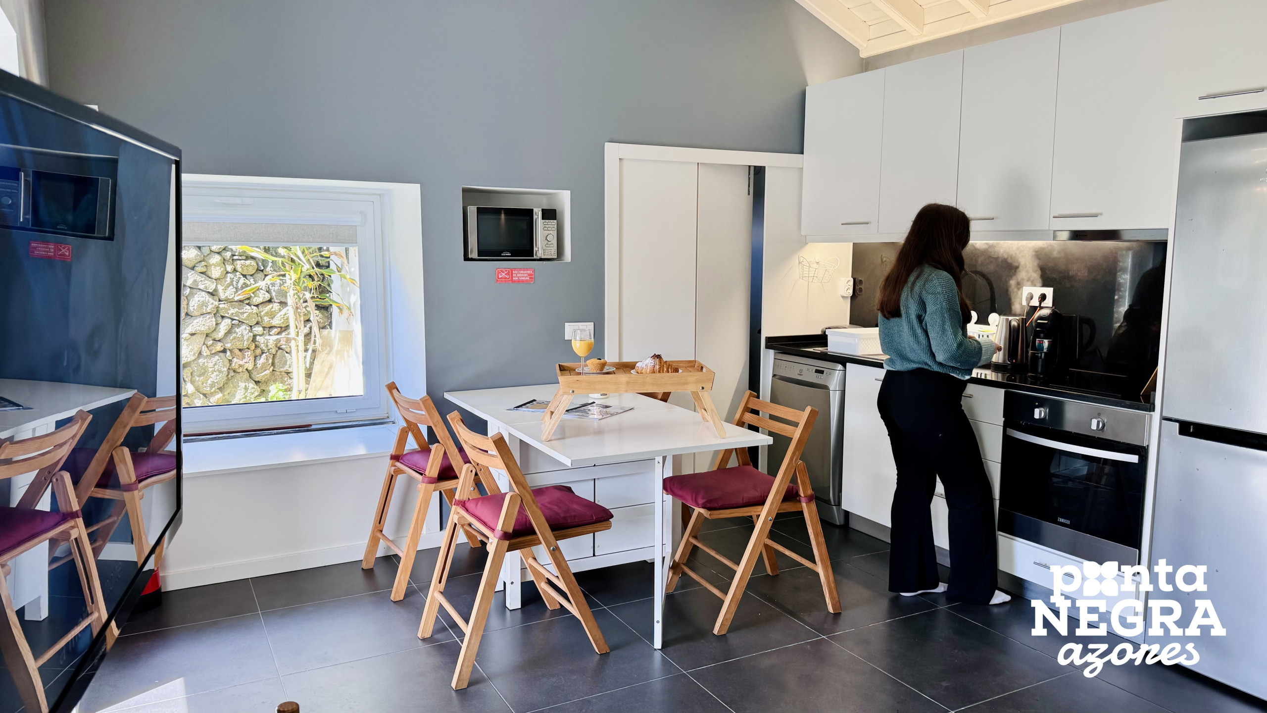 The accommodation has two double rooms, ensuring comfort and privacy for guests. It also has a complete, modern and functional bathroom, guaranteeing convenience throughout the stay. The social area is spacious, in an open space, integrating the living room with a fully equipped kitchen, allowing meals to be prepared in a practical and autonomous way. The living room also includes a sofa bed, increasing the capacity to accommodate up to six people.