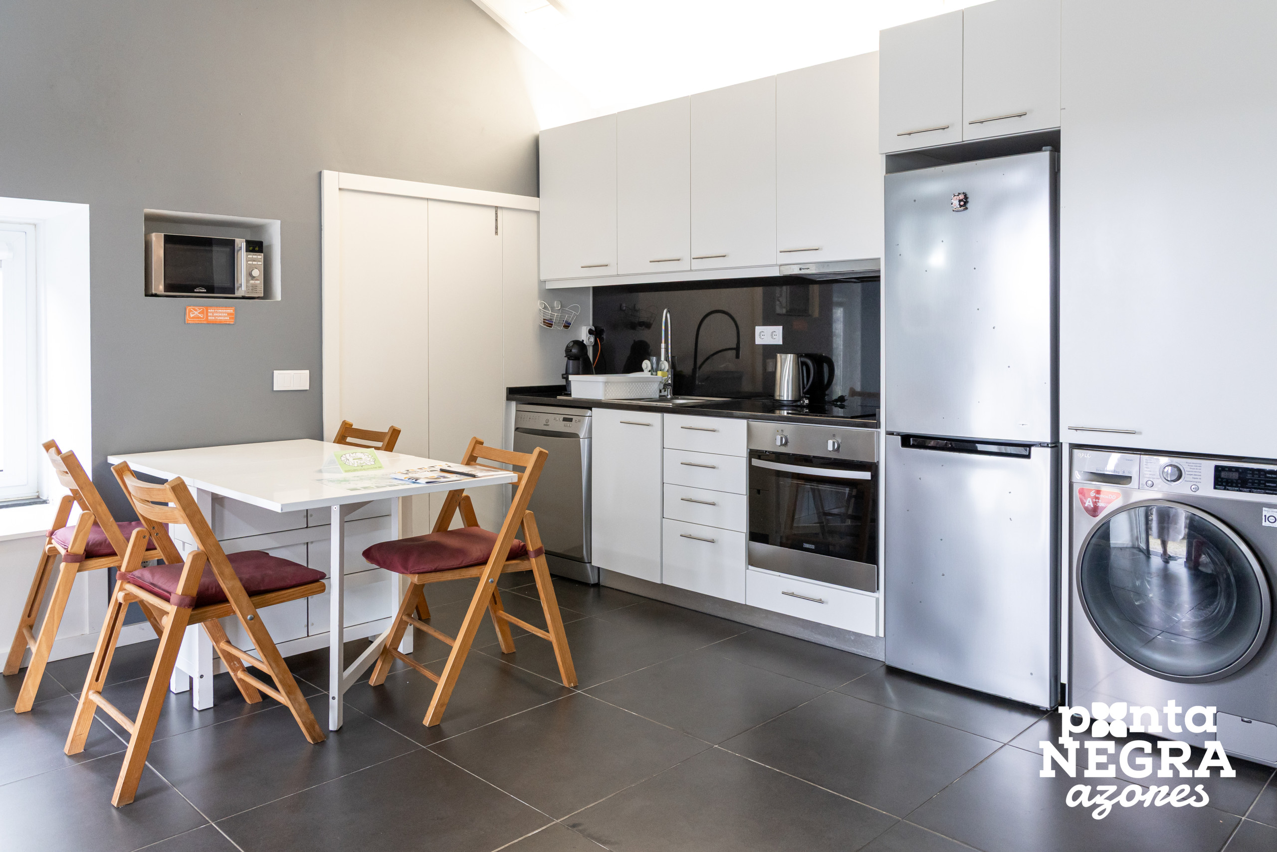 The Recanto das 5 T2 is located in a quiet area, close to points of interest such as Queijo Vaquinha and the natural pools of Cinco Ribeiras, combining the serenity of the location with easy access to the region's attractions.